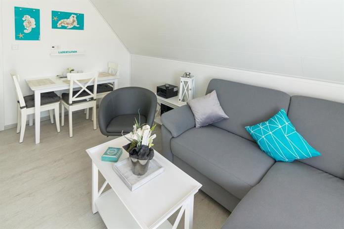 Die Captain’s Cabin verfügt über zwei Schlafzimmer: Das Hauptschlafzimmer ist mit einem komfortablen Bett (180×200 cm) ausgestattet, ideal für erholsame Nächte. Das kleinere Schlafzimmer bietet ein Echtholz Einzelbett (90×200 cm) und ist perfekt für Kinder oder Mitreisende. Die voll ausgestattete Küche lädt dazu ein, Ihre Lieblingsgerichte zuzubereiten. Das Tageslichtbad, sorgt für zusätzlichen Komfort .